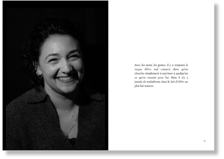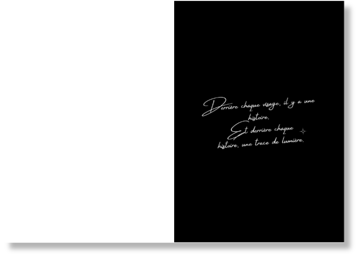 « C’est à la fois intime et artistique. Le texte est court, mais il dit énormément. Le portrait et l’écriture se répondent parfaitement. Le livret est élégant, minimaliste, et le résultat est vraiment unique. Je n’avais jamais vu ça ailleurs. »